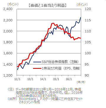■一方、米国の株価はおおむね企業収益の伸びに沿った動きになると見られます。17年の業績は10%前後の伸びが予想されていますが、トランプ新大統領の景気刺激策の効果で、18年に向けて上方修正となる可能性もあり、「強いアメリカの復活」が期待されます。トランプ次期大統領は税制改革の一環として、海外での利益から生まれた資金を米国に戻す際の税金を減税する措置を掲げています。実現すれば、海外で潤沢な資金を有する大型のテクノロジー企業などは、イノベーションを推進するための買収戦略の選択肢を広げることが可能となり、株価にプラスに作用すると期待されます。