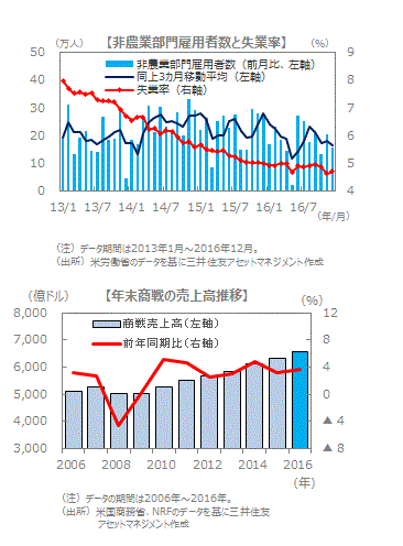 ■良好な雇用・所得環境を背景に、個人消費は堅調に推移しています。全米小売業協会(NRF)によれば、16年の年末商戦は前年に比べ+4.0%となり、NRFの事前予想である同+3.6%、15年実績の同+3.2%を、ともに上回る良好な結果に終わりました(年末商戦の売上高は、自動車、ガソリン、
