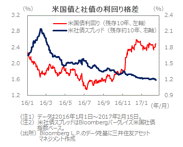 ■景気回復や順調な企業業績に加え、物価上昇率も落ち着いて推移しています。また、世界経済・政治情勢や金融市場に大きな波乱がなく、リスク回避の動きも起っていないことなどから、社債スプレッド(国債と社債の利回り格差)は縮小傾向を辿りました。