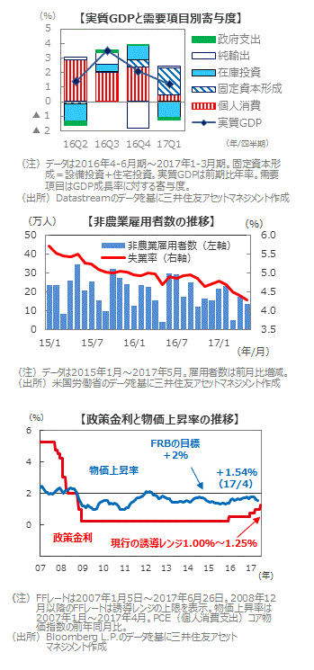 ■2017年1-3月期の米実質GDP成長率(改訂値)は、前期比年率+1.2%にとどまりました。暖冬という天候要因の影響によるものです。良好な雇用・所得環境が崩れたわけではありません。