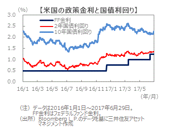 ■米国景気は底堅く、今後も利上げは継続される見通しです。さらに米連邦準備制度理事会(FRB)は年内にもバランスシート(B/S)の縮小を開始する意向を示しています。ただし、物価の上昇率が低い水準で推移すると予想されるため、利上げやB/Sの縮小はゆっくりとした速度で進められる見込みです。長期金利の上昇はゆるやかなものとなりそうです。