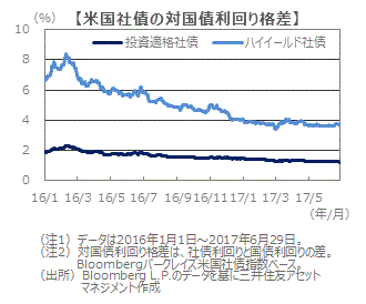 ■一方、社債スプレッド(国債と社債の利回り格差)は、投資適格債が小幅な縮小となったのに対し、ハイイールド債は拡大しました。