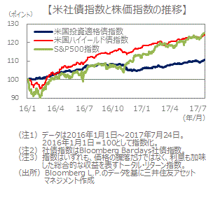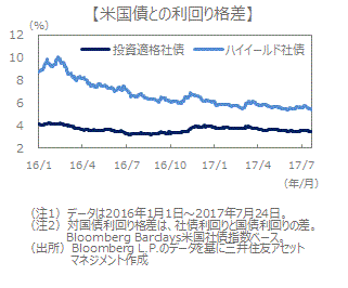 ■このところ米国の投資適格債指数や、ハイイールド債指数のパフォーマンスは極めて良好で、16年年初以降の収益率はそれぞれ10.5%、24.1%となります(7月は24日現在)。