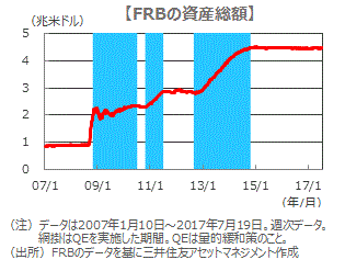 ■注目されていた米連邦準備制度理事会(FRB)の資産縮小については、開始の時期を従来の「年内」から「比較的早期」に変更しました。次回9月のFOMCで、資産縮小を決定することに関して合意が形成されたと考えられます。