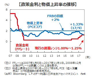 ■10月31日~11月1日に開催された米連邦公開市場委員会(FOMC)は、市場の予想通り、政策金利(FFレート)の誘導レンジを1.00%~1.25%で据え置くことを、全会一致で決定しました。