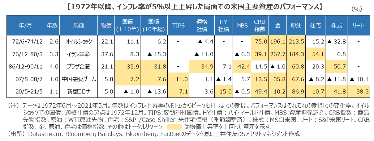 2.過去のインフレ率上昇局面と主要資産のパフォーマンス