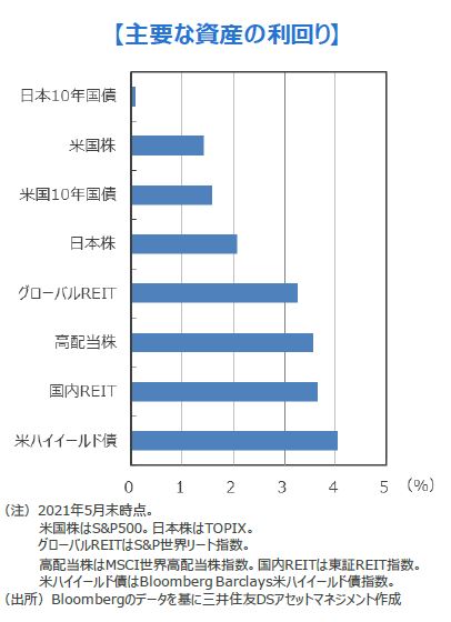 ■REITは、不動産からの収益の大部分を分配することを前提とした金融商品です。そのため、分配金の利回りは他の資産と比べても高めとなっています。