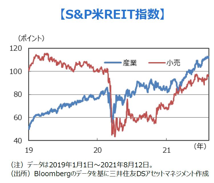 ■その他のリスク性資産についてもこの考えは応用できます。パンデミックに伴う人々の行動変容を受け、REIT市場では物流を含む産業関連が堅調な一方、商業施設を含む小売関連が弱くなっています。ハイイールド社債はITセクターの比率が低い一方でエネルギーセクターの比率が高いことが重しとなっています。株式市場と同様にコロナの影響は業種によって二極化します。