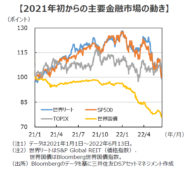 高インフレと金融引き締め、ウクライナ情勢、中国のコロナ感染拡大と景気減速、の三つの悪材料により、金融市場は今年に入って調整しています。先行きも、これまでのような高成長や、緩和的な金融政策など、市場環境の大幅な改善は見通し難い状況です。近年、S&P500種指数等に連動するインデックス投信の積立投資などによる資産形成を始めた投資家が多いようですが、このままでいいか、悩む声をよく耳にします。積立投資で時間分散を図りつつ、年齢的に長期の投資期間を想定している場合、運用で取っているリスクを下げる必要性は低いとお考えの方も多いと思われます。以下では、そういう場合の投資対象を検討してみます。