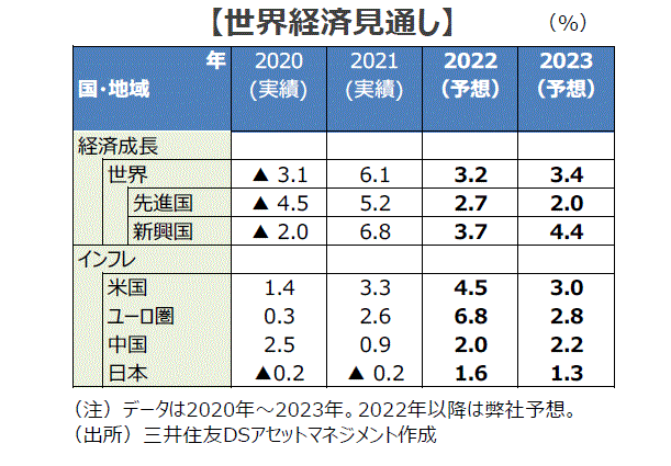 ■例えば、世界経済は、昨年の6.1%成長の後、今年は3.2%、来年は3.4%に鈍化していくと弊社では見込んでいます。世界の潜在成長率は3%をやや上回る水準と考えられますので、今後の経済成長はほぼ潜在成長率に沿ったものとなる見込みです。