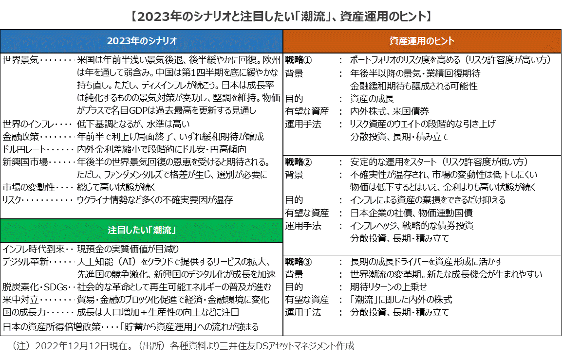 ■世界の「潮流」が変化する中、2023年は新たな成長機会が生まれやすい環境になると考えられます。ポートフォリオのリスク度を高める場合にも、新しい成長の礎を生む可能性のある「潮流」に注目するのも一法だと思われます。