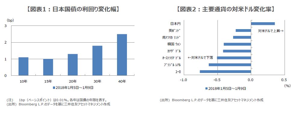 日銀は1月9日の国債買い入れオペ(公開市場操作)において、残存期間「10年超25年以下」の買い入れ予定額を前回の2,000億円から1,900億円に減額し、残存期間「25年超」の予定額も900億円から800億円に減額しました。これを受けて、国内債券市場では超長期ゾーンの金利が上昇し(図表1)、ドル円は1ドル=113円台前半から112円台半ばまで、ドル安・円高が進行しました。