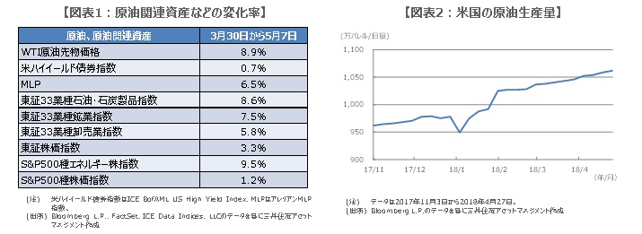 米国がイラン制裁を再開するとの見方から原油価格が上昇、原油関連資産も総じて堅調に推移
