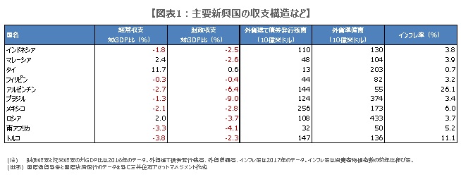 なお、新興国が海外から資金を借り入れる際、多くの場合は米ドル建てです。基軸通貨である米ドルは、信用力が高く、流動性が潤沢であることから、資金の貸し手に選好されます。また、新興国の経常収支や財政収支の赤字は、通貨に減価圧力を生み、輸入物価の上昇を通じた国内物価の押し上げ要因となります。従って、インフレ抑制のための政府や中央銀行の政策は非常に重要です。