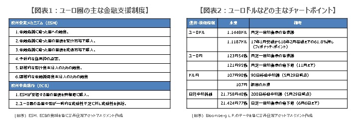 なお、①政局混迷によるイタリアの景気減速がユーロ圏に広がる場合、②イタリアの政府や銀行が資金調達難に直面し、金融システム不安がユーロ圏に広がる場合、市場は更に動揺する恐れがあります。①について、弊社はイタリアの経済成長率が押し下げられるリスクはあるものの、ユーロ圏全体では、米国の財政拡大やユーロ安が輸出を下支え、潜在成長率(1%台前半)を下回る公算は現時点で小さいと考えています。また、②について、ユーロ圏では金融危機に陥った国に対し、欧州安定メカニズム(ESM)が金融支援を行うなど、金融システム安定のための制度が整備されています(図表1)。