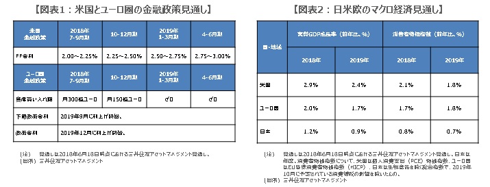 そして、欧州中央銀行(ECB)は予定通り、2018年10月から資産購入額を月300億ユーロから月150億ユーロへ減額し、2018年12月末で購入を打ち切ると思われます。また、利上げについて、ECBは下限政策金利(中銀預金金利、現行年マイナス0.4%)の引き上げを2019年9月に開始し、さらに政策金利(主要リファイナンス金利、現行年ゼロ%)の引き上げも2019年12月に開始し、出口戦略を進めるとみています。
