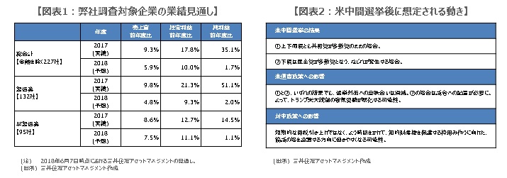 そのため、11月6日の米中間選挙を通過すれば、少なくとも選挙対策の意味合いがなくなるため、貿易問題に対するトランプ米大統領の強気姿勢が軟化する可能性があります(図表2)。日本では、10月下旬から3月決算企業の中間決算発表が本格化し、11月上旬まで続きます。中間決算で業績見通しを上方修正する企業が顕著にみられ、かつ、米中貿易摩擦問題に対する市場の懸念が後退するような状況となれば、年末にかけて日経平均株価が一段高となる展開も期待されます。
