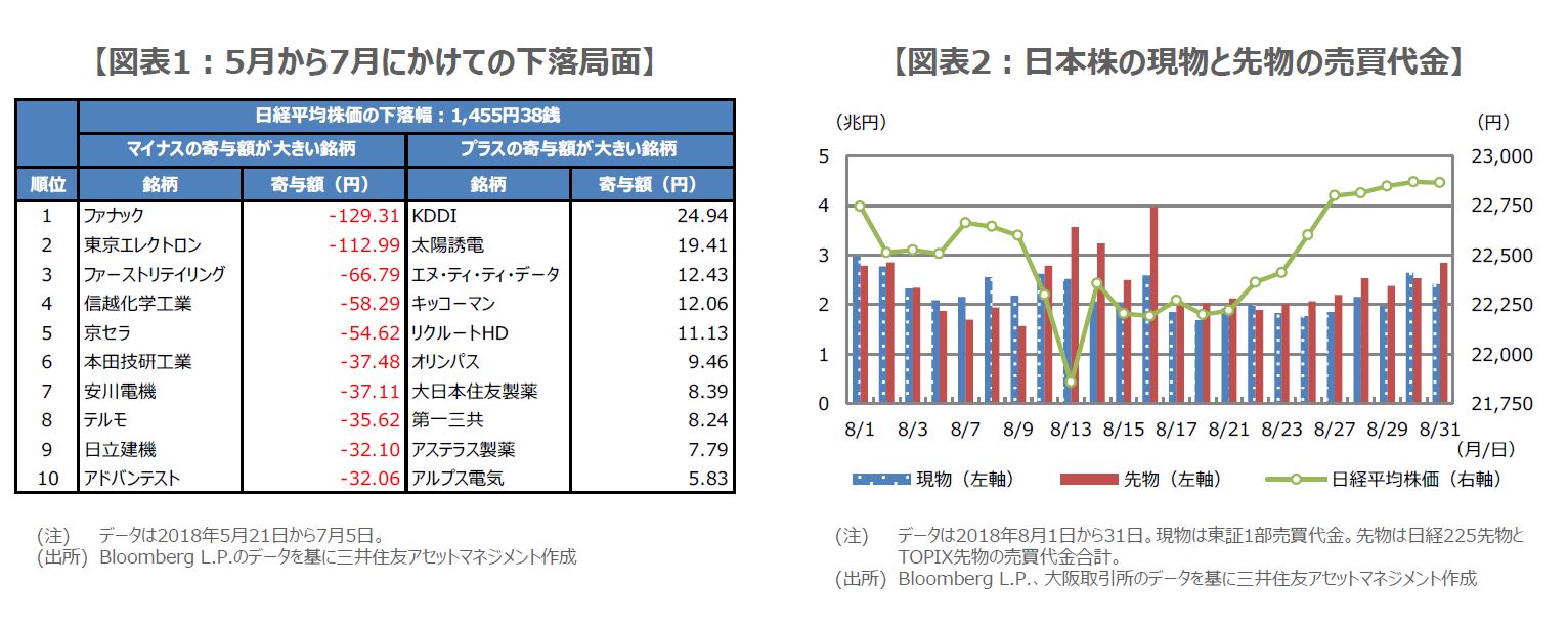 8月は先物主導の短期売買により日経平均は小幅な上下変動、値がさ株の寄与額が目立った