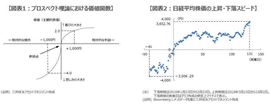 今回のレポートでは、日本株急落の心理的な要因を分析し、下げ止まりのシナリオについて考えてみます。初めに株安の心理的な要因に焦点をあてます。伝統的な経済学では、人は常に合理的な行動をとることを想定していますが、実際は非合理的な行動をとることもあります。例えば、行動経済学におけるプロスペクト理論では、人は儲かった時の喜びよりも、損をした時の悲しみをより大きく感じるとしています。