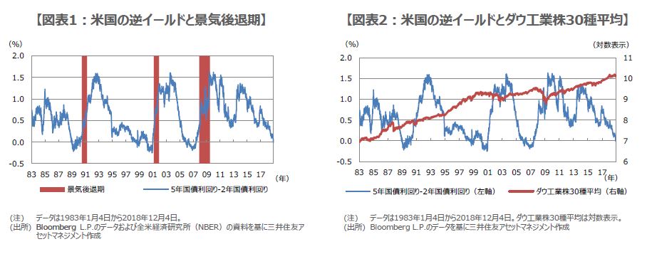 過去の例では、逆イールドから景気後退まで2年1カ月程度を要し、その期間ダウ平均は上昇した