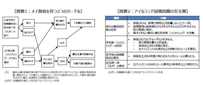 ●信任が決まったメイ首相だが、現行の離脱協定案を可決するには2つのハードルを越える必要あり。
