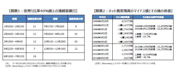 11月22日付レポート「需給面からみた日本株の動き」では、空売り比率の高水準での推移や、ネット裁定残高の急激な減少を指摘し、日本株の需給が供給超過にある状態を確認しました。その後も空売り比率は高水準での推移が続いており、ネット裁定残高の減少傾向にも歯止めが掛かっていません。日本株の需給は極端に歪んでいますが、今回のレポートでは、これが株価にどのような影響を及ぼしているのかについて検証します。