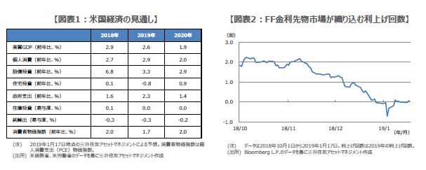 米金融政策については、年明け以降、米連邦準備制度理事会(FRB)の高官から利上げ休止を示唆する発言が相次いでおり、政策金利は当面据え置きとなる公算が大きくなりました。フェデラルファンド(FF)金利先物市場が織り込む2019年の利上げ回数をみると、直近でほぼゼロ回となっており(図表2)、市場では年内利上げなしとの見方が強まっています。