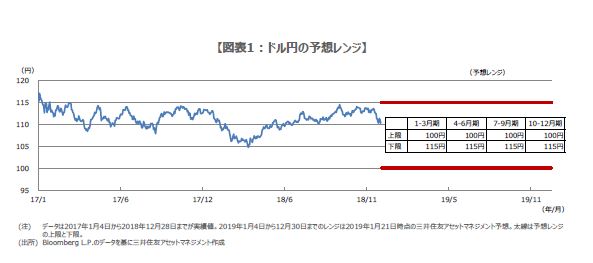 2019年のドル円相場は100円から115円のレンジ内で、ややドル安・円高方向の動きを見込む
