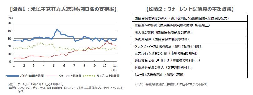 ●民主党の指名争いは混戦模様、なかでもウォーレン上院議員の政策に対する市場の警戒は強い。