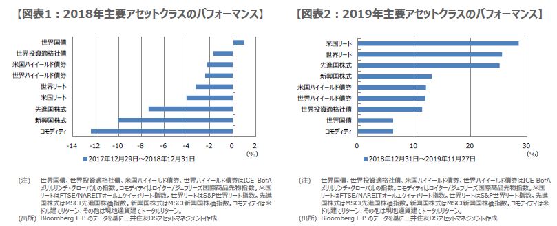 2019年は米中対立の結果、金融環境が緩和的となり主要アセットクラスは軒並み上昇に転じた