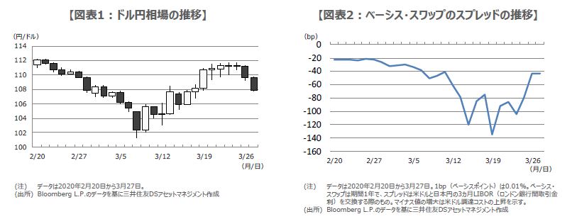 こうした状況を受け、日銀を含めた6中銀は3月16日、米ドルの資金供給の拡充策を発表し、米ドル供給時の適用金利を0.25%引き下げ、供給期間はこれまでの1週間に3カ月を新たに加えました。また、3月20日にも追加の拡充策が発表され、1週間物のドル供給の頻度は週次から日次に引き上げられました。ドル円は3月26日以降、再びドル安・円高に振れており、一連の政策で米ドル需要に起因するドル高局面は終了したとみています。