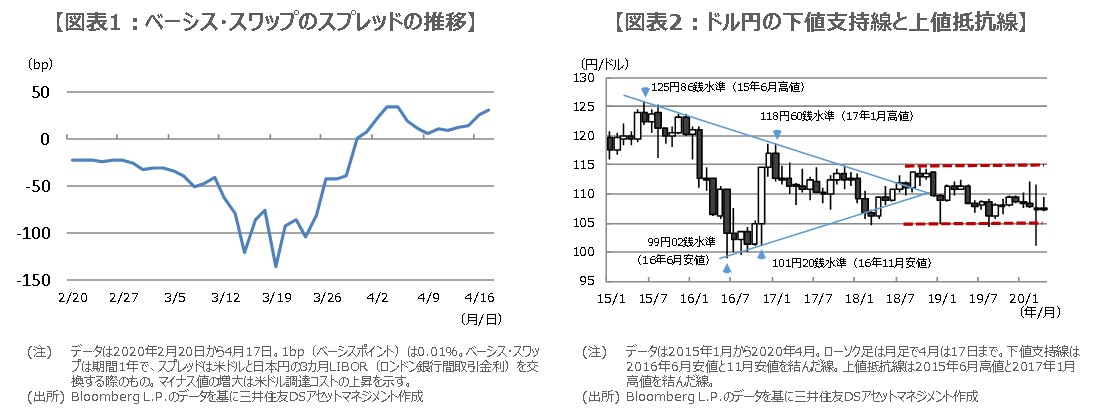 ドル需給のひっ迫を示すベーシス・スワップでのマイナスのスプレッドは、FRBのドル資金供給で解消