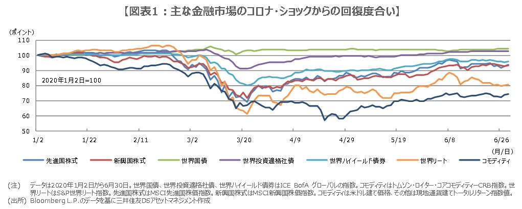 年前半を終え、株式市場、債券市場、リート市場、商品市場、それぞれの回復状況を確認する