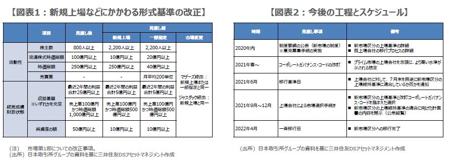このほかにも、上場廃止基準が見直され、また、不祥事企業への対応も厳格化する方針が示されました。なお、今後のスケジュールについては図表2の通りで、基本的に2月21日に公表されたものから変更はなく、2022年4月に市場は3区分に再編される予定です。今後は、3区分の上場基準に関する詳細や、新TOPIXの算出基準にかかわる議論が進むと思われますので、都度、内容を確認していきます。