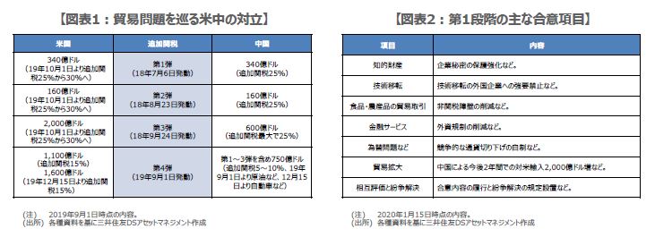 米中とも制裁関税第4弾まで発動したが昨年末に第1段階の通商合意に至り対立激化は回避