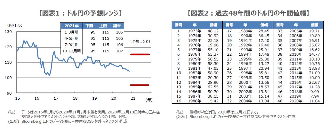 2021年末のドル円は107円を予想、年間の値幅は2021年もまた比較的小さいものにとどまろう