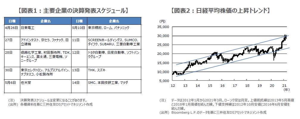 ただ、業績の改善は、すでに市場に織り込み済みと思われ、2020年度の本決算が良好な内容となっても、株価の反応は限定的となる公算が大きいと考えます。また、今回は多くの企業が2021年度の業績予想を公表するとみられますが、その数字が市場の期待に届かなかった場合、いわゆる「ガイダンスリスク」が顕在化し、決算発表後に株価が下落する展開も想定されます。