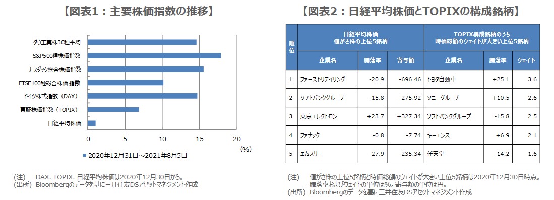 日本株は世界的に出遅れ感が強いが、日経平均のパフォーマンスはTOPIXに比べるとさらに低調