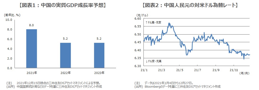 構造改革については、2022年も続く見通しですが、9月の電力規制のような、景気に対して大きなショック性のある政策は見送られると思われます。また、財政政策については、積極方針を維持するものの、大型の景気対策は組まず、金融政策については、穏健な政策を通じて流動性の供給は継続するものの、行き過ぎた緩和観測は容認しない方針にあると考えています。