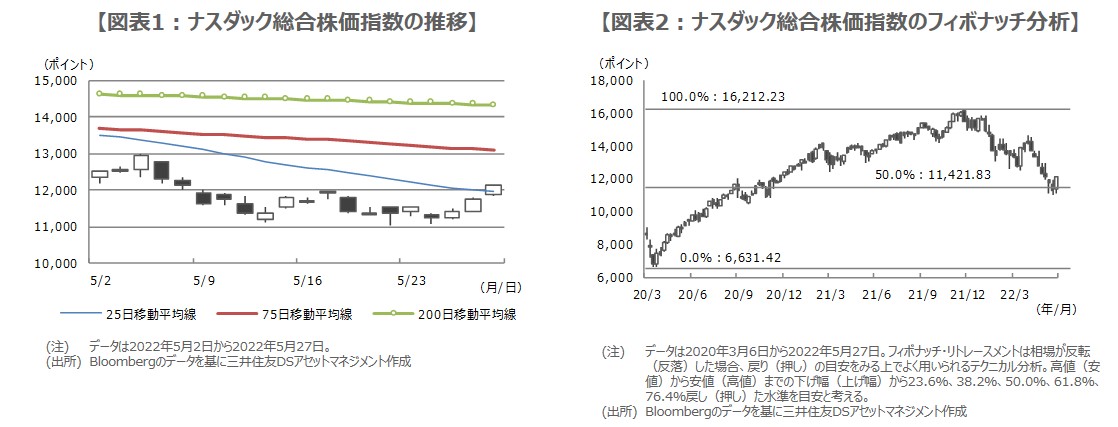 なお、ナスダックは5月27日に、25日移動平均線を上抜けて取引を終えています(図表1)。この先、75日移動平均線(5月27日時点で13,095.95ポイント)を回復すれば、底離れがより明確になり、200日移動平均線(同14,332.15ポイント)を回復すれば、調整局面はほぼ終了と考えられます。相場の大底の判断は、非常に難しいのですが、その兆しは見え始めているようにも思われます。