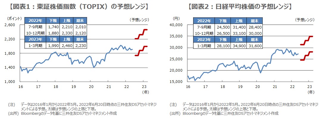 2022年末時点の水準について、TOPIXは2,120ポイント、日経平均株価は30,000円を予想