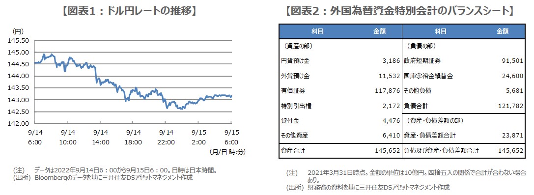 9月14日のドル円相場の動きを振り返ると、早朝の東京外国為替市場で1ドル=144円96銭水準をつけ、145円に接近する場面もみられましたが、日銀のレートチェックや鈴木財務相の発言で、為替介入への警戒感が高まり、その後はドル安・円高方向に転じました。海外市場でもこの流れは続き、同日のニューヨーク外国為替市場では、142円55銭水準まで、ドル安・円高が進みました(図表1)。