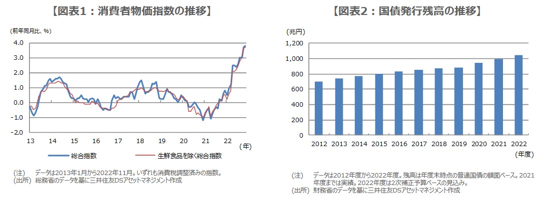 最後に、持続可能な財政構造を確立するための政府の取り組みを振り返ります。2013年6月の閣議決定で、国・地方を合わせた基礎的財政収支(プライマリーバランス)について、2020年度までに黒字化を目指すとされましたが、2018年6月に2025年度までとなり、2022年6月には目標年次が設けられませんでした。国債発行残高も増加傾向が続いており(図表2)、持続可能な財政構造はまだ確立されていません。