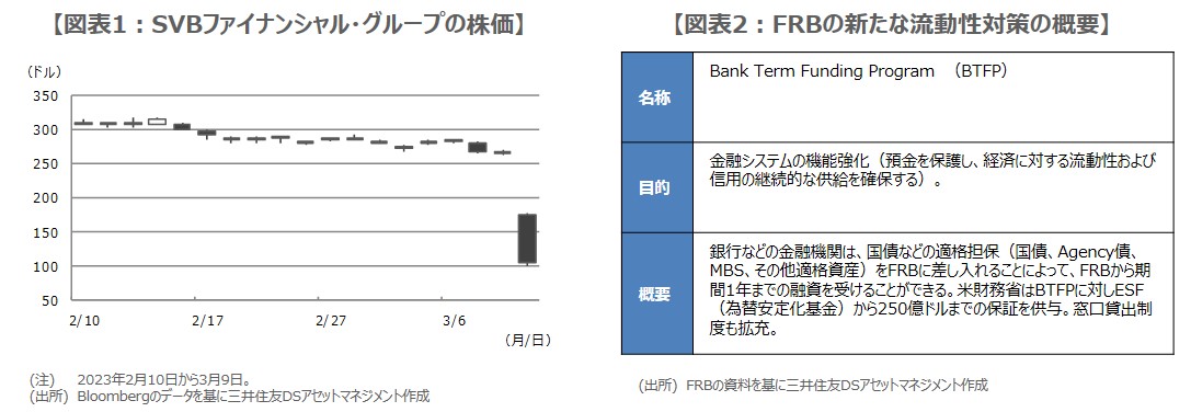 このような状況下、米財務省、FRB、FDICは3月12日、SVBとシグネチャー・バンクの預金を全額保護する例外措置を発表しました。また、FRBは同日、SVBの破綻を機に金融システム全体が機能不全に陥る「システミックリスク」を抑制するため、新たな流動性対策(Bank Term Funding Program、BTFP)を発表しました(図表2)。これらの施策は、市場の混乱を鎮静化させるのに大きく貢献すると思われます。