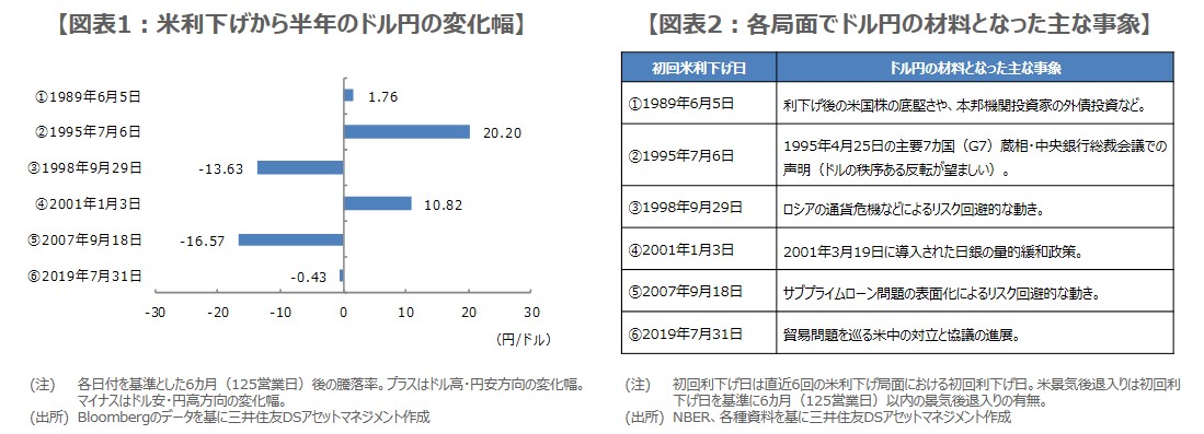 米利下げから半年間のドル円の動きはまちまちとなり必ずしもドル安・円高が進むとは限らなかった