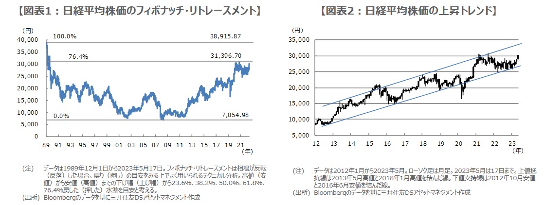 5月16日付レポートで指摘した通り、日本株には好材料が複数浮上しています。今後は、インバウンド需要の回復が続くか、日銀の金融緩和姿勢に変化がないか、国内企業に成長持続のための構造改革を進める動きが広がるか、賃上げの流れが続くかなどを見極める必要があります。また、米国をはじめとする海外景気が大きく冷え込むことはないかなど、国外要因も、日経平均の長期上昇トレンド継続のための重要なポイントと考えています。