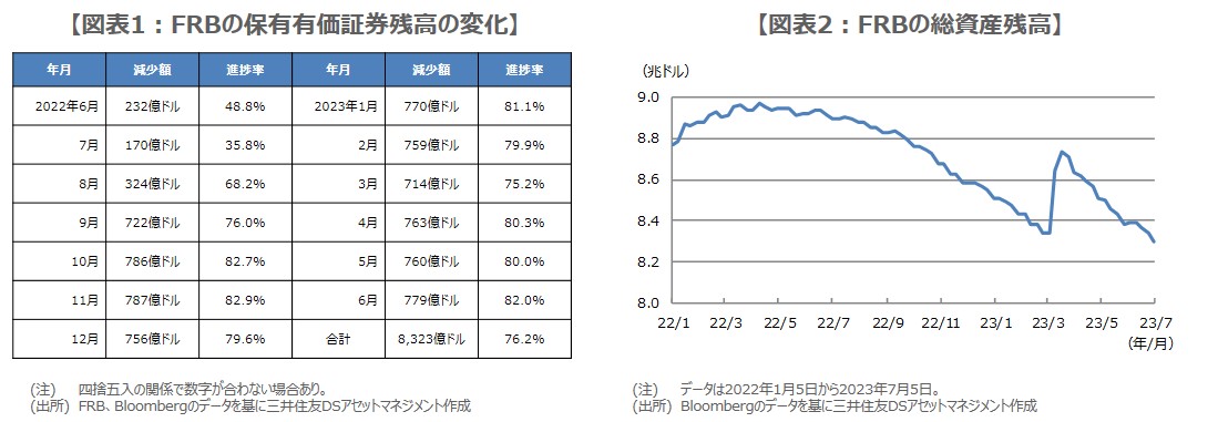 有価証券はQTで8,323億ドル減少したが、金融不安の影響で総資産の減少額はそれを下回る