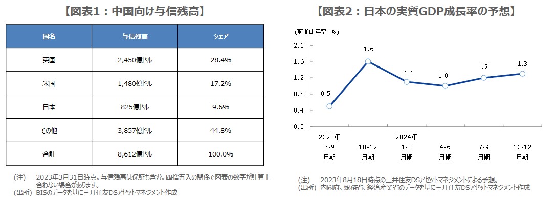 しかしながら、中国では国をまたぐ資本移動が制限されているため、中国国内で金融ショックが発生しても、海外への直接的な波及は相当程度抑制されると思われます。また、日本の中国向け与信残高は825億ドルと、全体の9.6%を占めていますが(図表1)、日本の対外資産残高は10.2兆ドルに達しており、そもそも中国は、日本、ドイツに次ぐ世界第3位の対外純債権国です(2022年末時点)。