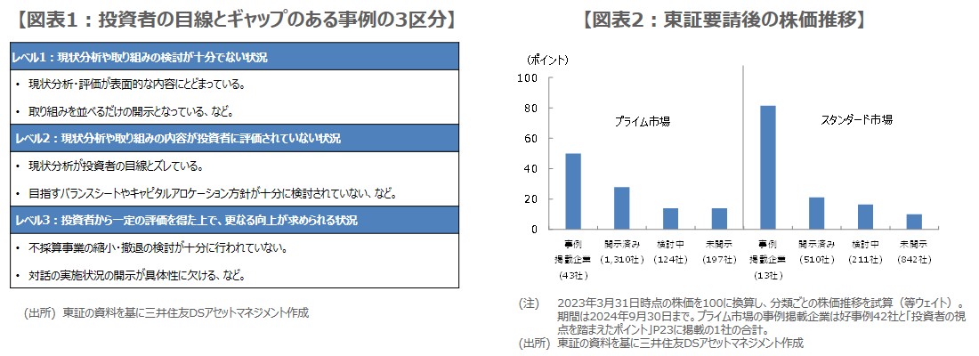 ●東証は11月21日、投資者目線とギャップのある事例などを公表、ギャップ事例は3つに区分された。