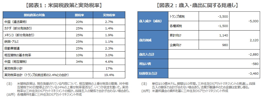 現時点で、雇用や消費の実際の動向を示す経済指標である「ハードデータ」に大きな変調はみられませんが、弊社が想定する実効税率の上昇は、やはり米国経済にはマイナスであり、関税の影響は7-9月期から顕在化し始める可能性が高いと考えています。ただ、これまでの経緯を踏まえると、米国の景気や企業に悪影響が大きいと判断した場合、トランプ氏は機動的に関税政策を修正すると思われます。